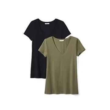 Show moreIntroducing the Amazon Brand - Daily Ritual Women's Stretch Supima Short-Sleeve V-Neck T-Shirt, your new go-to essential that effortlessly complements any wardrobe. Crafted from a premium blend of certified Supima Cotton and a touch of spandex, this t-shirt promises not only a luxurious softness but also the right amount of stretch for day-long comfort. Available in classic Black and Olive Green hues, this versatile tee features a flattering V-neck design and a straight hem, making it the ideal foundation for a variety of outfits, whether you're dressing it up or down.