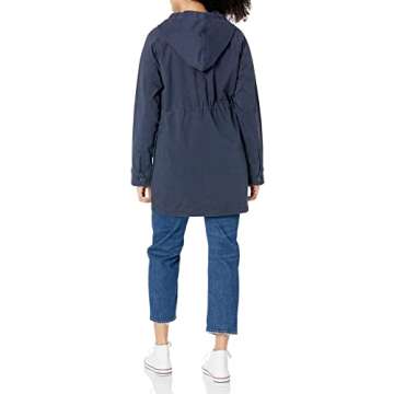 Show moreIntroducing the Amazon Brand - Goodthreads Women's Oversized Hooded Cargo Jacket, your ultimate multi-season outerwear companion! This jacket combines a stylish oversized silhouette with a functional design, making it a must-have item for your wardrobe. Crafted with a lightweight material that boasts a smooth matte finish, this jacket is perfect for layering without added bulk. Its thoughtful features include two button-up chest pockets and side patch pockets, allowing you to carry essentials hands-free while maintaining a chic look. The single button cuff and zip-up button lapels enhance versatility, making this jacket suitable for casual outings or dressed-up moments. Be sure to size down when ordering, as this jacket runs large, ensuring a flattering fit that accentuates your unique style. Our model showcases the Small size at 5'10", illustrating how beautifully this jacket drapes on various body types.