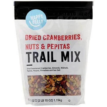 Show moreIndulge in the perfectly blended Happy Belly Dried Cranberries, Nuts & Pepitas Trail Mix, a delightful snack that brings together the finest ingredients to satisfy your cravings. This 42-ounce stand-up, resealable bag is packed with tartly sweet cranberries and crunchy pepitas, providing a harvest-inspired flair that makes every handful a treat. But that’s not all; the true star of this mix is its all-star nut ensemble featuring almonds, walnuts, pecans, and pistachios—each carefully selected to ensure freshness and quality. With Happy Belly, you can trust that you are receiving a premium product at a fraction of the price compared to local supermarket brands.