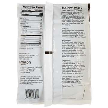 Discover the delicious and nutritious benefits of Happy Belly Frozen Broccoli Florets! Each 12-ounce bag is carefully packed with vibrant green florets that promise the taste and textures of fresh produce, right from your freezer. Unlike many other frozen veggies, our broccoli is specially selected and quick-frozen to lock in flavor and essential nutrients. It's an all-in-one cooking companion that makes meal prep easy and fast, while delivering an incredible taste experience that both kids...
