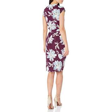 Show moreStep into sophistication with the Amazon Brand - Lark & Ro Women's Classic Cap Sleeve V-Neck Compact Matte Jersey Wrap Dress in a stunning wine floral print. This exquisite dress is tailored to drape beautifully over your figure with its smooth matte fabric, creating an elegant silhouette that flatters a range of body types. The classic cap sleeves and v-neckline add a touch of femininity, while the tulip hem enhances your natural shape, making it a must-have addition to your wardrobe. Perfect for transitioning from the office to after-hours with ease, this versatile dress ensures you look chic and feel confident no matter the occasion. Model is wearing a size Large, with a length of 38 inches from shoulder to hem, making it suitable for different body frames. Versatility meets style in this stunning piece!