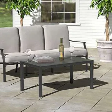 Amazon Brand - Ravenna Home Archer Outdoor Patio Steel Coffee Table with Panel Top, 38"W, Gray