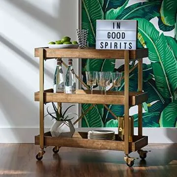 Amazon Brand – Rivet 3-Tiered Rustic Metallic Rolling Wood and Metal Bar Cart, 29.9"W, Natural