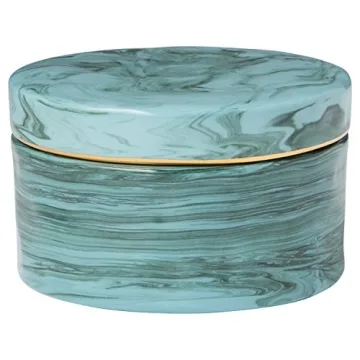 Show moreElevate your home decor with the stunning Amazon Brand – Rivet Decorative Stoneware Jewelry Keepsake Box. This exquisite piece features a unique dark grey marbling design blended with a captivating blue-green glaze, making each container a distinct work of art. Measuring at 4 inches in diameter and 2.38 inches in height, it’s perfectly sized to store jewelry and cherished keepsakes. Crafted from durable 100% stoneware, this charming round box is not just practical, but also a stylish addition to any room in your home.