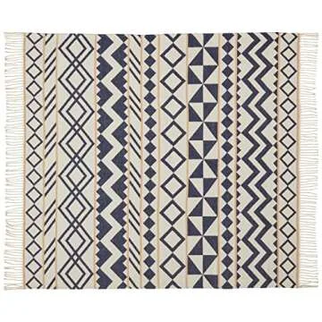 Amazon Brand – Rivet Global Inspired Geometric Throw Blanket, Soft and Stylish, 50" x 60", Navy/Natural