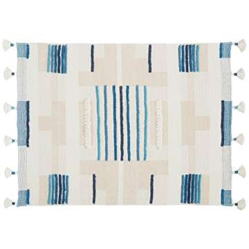 Amazon Brand – Rivet Global Textured 100% Cotton Throw Blanket With Large Tassels, Blue and White, 50"x60"