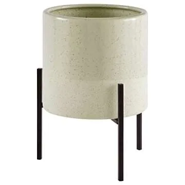 Amazon Brand – Rivet Mid-Century Ceramic Planter with Iron Stand 9.1"H, Pale Green