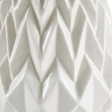 Show more Discover the perfect blend of elegance and modern design with our stunning vase! Made from high-quality stoneware, this vase features uniquely textured geometric patterns that add a contemporary touch to any space. Its sleek, milky white color, complemented by a transparent glaze, ensures it harmonizes seamlessly with various interior styles. Whether you choose to fill it with fresh flowers or let it shine as a standalone decorative piece, this vase stands tall at 12.25 inches high with a generous 6.25-inch diameter. Versatile and chic, it enhances your home decor effortlessly.