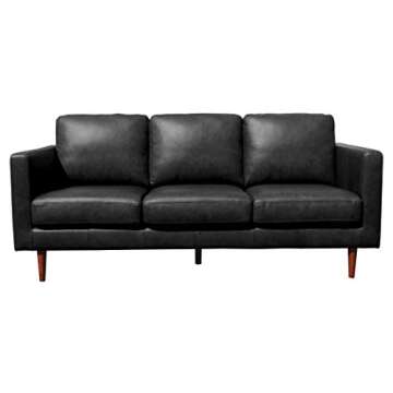 Amazon Brand – Rivet Revolve Modern Leather Sofa Couch, 80"W, Black