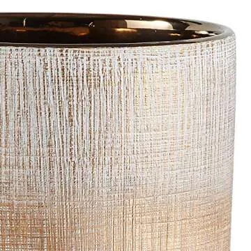 Show more Transform your living space with this exquisite stoneware planter that effortlessly combines modern and classic aesthetics. Whether adorned with vibrant plants or displayed alone as a chic decor piece, this planter makes a bold statement. The exterior showcases a stunning white finish accented by a luxurious electroplated bronze, while the interior features a contrasting darker bronze that adds depth and sophistication.