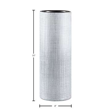 Show more This stunning vase perfectly embodies elegance and sophistication, making it an ideal choice for those looking to enhance their living spaces. With a pristine white exterior complemented by a striking electroplated silver finish, this vase effortlessly bridges the gap between modern and classic styles, ensuring it will complement any decor. The interior is a tasteful darker grey, offering a chic contrast that elevates the overall design.