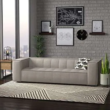 Show moreIntroducing the **Rivet Thomas Modern Upholstered Sofa Couch**, a perfect blend of style, comfort, and durability designed to elevate your living space. Measuring an impressive **101.2 inches** in width, this modern sofa is an ideal choice for families and individuals who enjoy unwinding in comfort. Crafted with a solid-wood frame, it boasts **foam padding** and premium fabric upholstery, making it not only functional but also a beautiful addition to any home decor. The sleek, angular design coordinates seamlessly with a variety of styles, making it the versatile centerpiece you’ve been searching for.