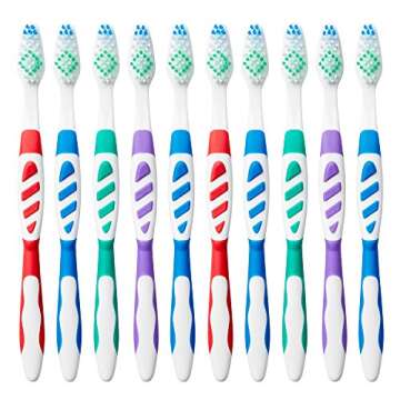 Show moreDiscover a new level of oral care with the Amazon Brand - Solimo Clean Plus Toothbrushes. This exceptional pack includes 10 toothbrushes that are designed to elevate your daily dental routine. Each toothbrush features soft bristles that are gentle on your gums yet effective at removing plaque and debris. The uniquely designed angled end-tuft makes it a breeze to reach even the most difficult areas, ensuring that every tooth gets the care it deserves.