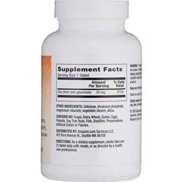 Amazon Brand - Solimo Zinc 30mg, Unflavored, 300 Tablets, Ten Month Supply
