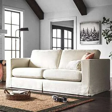 Amazon Brand – Stone & Beam Bryant Modern Sofa Couch with Slipcover, 85.1"W, Optic White