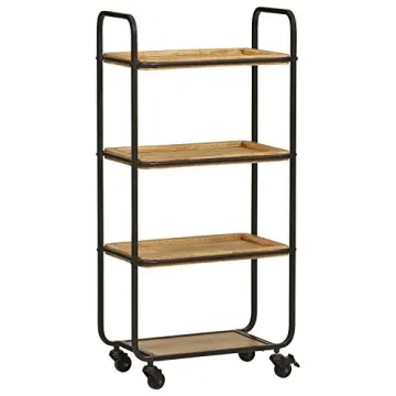 The cart is made from rubberwood and iron, combining durability with a stylish design.