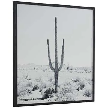 Show moreIntroducing the Amazon Brand – Stone & Beam Modern Black and White Desert Cactus Photo on Wood, a stunning piece that captures the elegant simplicity of nature in a timeless design. Measuring 20" x 20" and expertly printed on high-quality wood, this captivating black-and-white print showcases a perfectly symmetrical cactus set against a minimalist desert backdrop. The artwork is beautifully framed in a weathered black wood frame that not only enhances its aesthetic appeal but also ensures durability and longevity. Ideal for those who appreciate modern decor with a touch of the natural world, this piece effortlessly complements any interior design scheme.