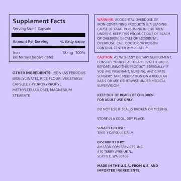 Show moreIntroducing the Amazon Elements Iron 18mg capsules, a dietary supplement designed to enhance your energy levels and support critical bodily functions. Each bottle contains 195 capsules, enough for a six-month daily regimen, ensuring that you stay mindful of your health without frequent repurchases. Crafted without any artificial colors, flavors, or chemical preservatives, this vegan and gluten-free iron supplement is perfect for those seeking to maintain their health naturally. Produced in a Good Manufacturing Practices (GMP) certified facility in the USA, these capsules combine high-quality US and imported ingredients, making them a reliable choice for anyone looking to boost their iron intake.