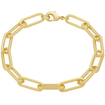 Show moreIntroducing the exquisite Amazon Essentials 14K Gold Plated Chunky Chain Link Bracelet, a beautiful intersection of elegance and modern fashion. This stunning bracelet features a durable 14K gold plating over brass, with dimensions of 7.5 inches in length and 6 mm in width, perfectly suited for any wrist. Its versatility allows it to be worn solo for a minimalist look or stacked with other beloved pieces for a more layered effect. The easy-to-use lobster claw clasp not only secures the bracelet comfortably but also adds an element of convenience for everyday wear.