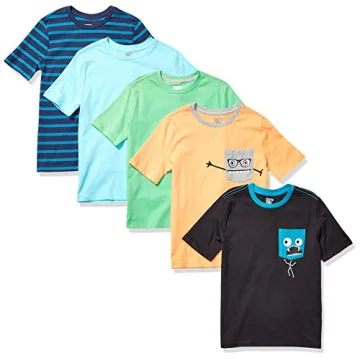 Amazon Essentials Boys' Short-Sleeve T-Shirts Pack of 5 in Fun Designs for Active Kids