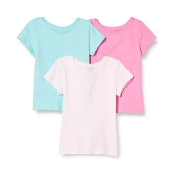 Show moreIntroducing the Amazon Essentials Girls' Short-Sleeve T-Shirt Tops - the ultimate wardrobe staple designed for style and comfort! This pack of three t-shirts, offered in delightful aqua blue, pink, and white, showcases a tailored fit perfect for your young fashionista. Each shirt is crafted from light-weight cotton jersey that provides exceptional breathability and natural stretch, allowing your child to move freely while looking adorable every day. Whether it's a sunny spring afternoon or a warm summer day in Texas, these t-shirts are designed to keep your little one cool and stylish, making them ideal for all-year-round wear.