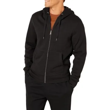 Show moreIntroducing the Amazon Essentials Men's Full-Zip Fleece Hoodie, a must-have addition to your casual wardrobe. Made with a premium 8.3 oz brushed-back cotton-polyester blend fleece, this hoodie offers an amazing softness that you can feel from the very first wear. Say goodbye to cheap, squeaky fabrics; this hoodie is tightly woven to deliver an elevated feel that doesn’t shed after washing. Its expertly constructed profile features a relaxed fit through the shoulders, chest, and waist, ensuring a flattering silhouette that suits every body type.