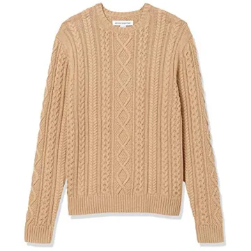 Amazon Essentials Men's 100% Cotton Fisherman Cable Sweater - Classic & Comfortable