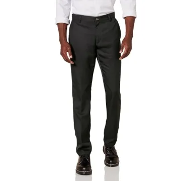 Show moreTransform your wardrobe with the Amazon Essentials Men's Slim-Fit Flat-Front Dress Pant, designed for those who appreciate style, comfort, and versatility. Tailored from premium polyester twill, these sleek pants feature a subtle sheen that enhances their sophisticated appeal, perfect for various occasions—from weekdays at the office to casual gatherings. The slim fit, designed to flatter your silhouette, makes these pants sit comfortably below the waist while tapering through the leg, ensuring you look sharp and feel confident. Whether you're pairing them with a crisp dress shirt or layering up with a stylish blazer, these dress pants promise to keep you looking polished all year round.