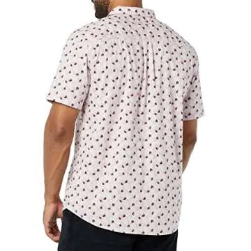 Amazon Essentials Men's Slim-Fit Short-Sleeve Button-Down Vacation Shirt, Lavender Palm Leaf Print, Small