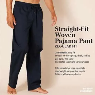 Show moreExperience the ultimate blend of comfort and style with the Amazon Essentials Men's Straight-Fit Woven Pajama Pant. Made from high-quality cotton poplin, these pajama pants are designed for those who prioritize relaxation without compromising on aesthetics. The soft, breathable fabric allows for a cool night's sleep, making it an essential addition to your loungewear collection. With a classic light blue and white plaid design, these pants not only feel amazing but also look great whether you’re lounging at home or drifting off to sleep. Their regular fit through the hip and thigh paired with a straight leg ensures a comfortable, easy fit that sits perfectly below the waist, accommodating a range of body types.