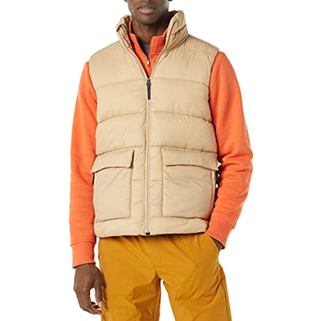 Introducing the Amazon Essentials Men's Water-Resistant Sherpa-Lined Puffer Vest in a stylish Khaki Brown, designed with comfort and versatility in mind. This lightweight vest features a premium water-resistant outer layer and an ultra-soft sherpa lining, ensuring warmth without sacrificing mobility. Its practical design includes generous fleece-lined pockets, perfect for keeping your hands cozy or holding your essentials while on the go. Ideal for any active individual, this vest is a must-have...