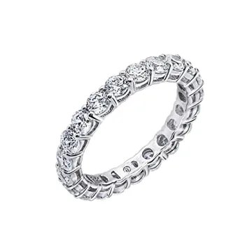 Show moreDiscover the stunning elegance of our Amazon Essentials Platinum-Plated Sterling Silver Infinite Elements Cubic Zirconia (3 cttw) All-Around Ring, a remarkable piece that seamlessly combines luxury and affordability. This exquisite eternity band, measuring 4mm in width and adorned with shimmering 3.5mm round cut Infinite Elements Cubic Zirconia stones, dazzles with a 3-carat total weight. Whether you’re wearing it as a statement piece or pairing it with your favorite jewelry, its timeless design ensures it stands out in any setting. Previously known as an Amazon Collection piece, this ring exemplifies quality and sophistication, making it a must-have addition to your collection.