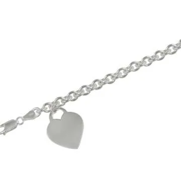 STYLE: Sterling silver charm bracelet with large heart charm is 9 inches (22.9 cm) long; a charming and expressive style for any occasion