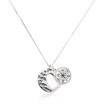 Amazon Essentials Sterling Silver "Go in the Direction Of Your Dreams" with Compass Pendant Necklace, 18" (previously Amazon Collection)