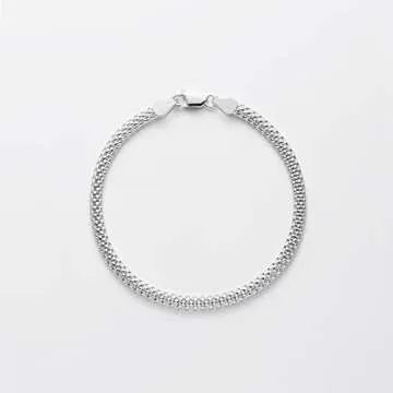 Show moreIntroducing the Amazon Essentials Sterling Silver Mesh Chain Bracelet, a stunning accessory that blends elegance with everyday functionality. Designed to span a generous 8 inches (20.3 cm), this bracelet is not just a piece of jewelry; it is a statement of style and sophistication. The unique mesh chain is meticulously crafted in high-quality sterling silver, allowing it to shimmer and reflect light effortlessly. This careful construction not only elevates your style but ensures that this bracelet becomes a cherished piece in your collection. Its hypoallergenic properties make it suitable for sensitive skin, providing both beauty and comfort.