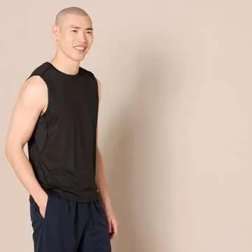 Amazon Essentials Tech Stretch Mens Muscle Shirt, Black, Large