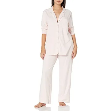 Show moreDiscover unparalleled comfort with the Amazon Essentials Women's Cotton Modal Long-Sleeve Shirt and Full-Length Bottom Pajama Set. Crafted from a luxurious blend of super soft cotton modal, this pajama set is designed to provide you with the perfect relaxed fit that effortlessly combines style and functionality. The midweight fabric offers gentle stretch and breathability, ensuring you stay cool and cozy whether you’re lounging at home or enjoying a restful night’s sleep. The chic pale pink hue radiates elegance, making you feel confident even during those early morning deliveries or unexpected guests.