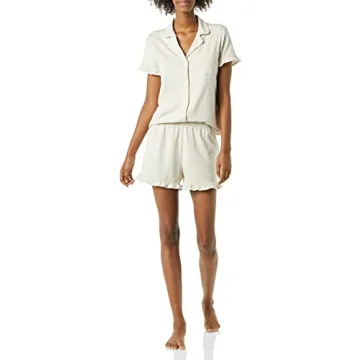 Amazon Essentials Women's Cotton Modal Piped Notch Collar Pajama Set (Available in Plus Size)