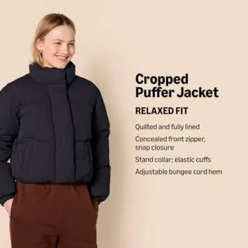 Amazon Essentials Women's Cropped Full-Zip Puffer Jacket (Quilted Matte or Sherpa Fleece)