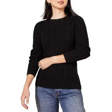 Show more Discover the ultimate in comfort and style with the Amazon Essentials Women's Fisherman Cable Long-Sleeve Crewneck Sweater. This beautifully crafted sweater is more than just a fashion statement; it is a travel-ready staple that guarantees warmth without sacrificing breathability. Made from 100% soft cotton, this midweight, textured cable-knit sweater is designed to bring you cozy comfort on chilly days. The classic fisherman cable pattern elegantly combines timeless design with modern aesthetics, making it perfect for a polished look or casual outings. Available in versatile colors, including deep black, this sweater caters to various styles and preferences, ensuring it can be effortlessly integrated into any wardrobe.