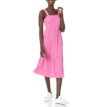 Introducing the Amazon Essentials Women's Fluid Twill Tiered Fit and Flare Dress, a must-have addition to every woman's summer wardrobe. This dress is designed with every body in mind; it features a fitted silhouette through the chest and waist that gracefully flares to the hem, flattering a variety of shapes and sizes. Crafted from 100% viscose, this fabric is not only lightweight and breathable but also incredibly comfortable, making it perfect for year-round wear. Its...