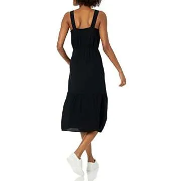 Amazon Essentials Women's Fluid Twill Tiered Fit and Flare Dress, Black, Medium