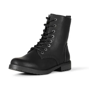 Show moreStep into comfort and style with the Amazon Essentials Women's Lace-Up Combat Boot. Designed for the modern woman, these boots combine fashion with functionality, featuring a padded insole with high-quality memory foam for all-day comfort. The lace-up closure ensures a customizable fit, while the inside zipper allows for easy entry and exit. Crafted from high-quality alternative leather materials, these boots boast a faux buffalo grain leather upper and are lined in faux leather for durability and style.