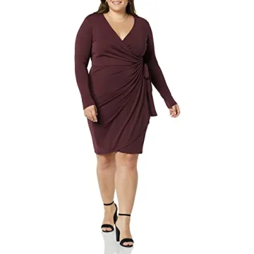Show moreElevate your wardrobe with the Amazon Essentials Women's Long Sleeve Classic Wrap Dress, a versatile and chic addition to your collection. Designed with a classic fit that embraces your figure while allowing for easy movement, this dress is crafted from a luxurious matte jersey fabric that is not only soft to the touch but also maintains its shape beautifully. Whether you're dressing up for a business meeting or enjoying a night out with friends, this wrap dress adapts seamlessly to any occasion. Available in a stunning burgundy color, this dress makes a bold statement while still keeping a classic and polished appearance.