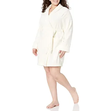 Show moreIntroducing the Amazon Essentials Women's Mid-Length Plush Robe - the epitome of comfort and style for your cozy nights and lazy mornings. Crafted with love, this relaxed fit robe is designed to envelop you in warmth, making it perfect for curling up at home or stepping out for your morning coffee. The luxurious plush fabric feels irresistibly soft against the skin, while the mid-length cut offers just the right amount of coverage for all body types, including plus sizes. Available in a beautiful cream hue, this robe combines functionality with a touch of elegance.