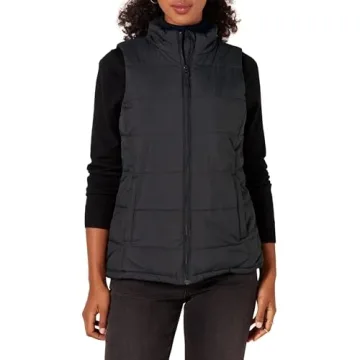 Show moreIntroducing the Amazon Essentials Women's Mid-Weight Puffer Vest—a chic and practical addition to your wardrobe, designed to embrace both style and functionality. Crafted from high-quality water-resistant polyester taffeta, this vest boasts a heavily insulated, quilted lining that keeps you warm during the chilliest days without sacrificing comfort. Its classic black finish elevates any outfit, making it a versatile piece for fall and winter. With a regular fit that flatters your silhouette, this vest offers the perfect amount of coziness whether you wear it over a simple tee or layer it under a heavier coat. The design integrates flattering seam details and a stand collar, setting it apart from traditional puffer vests.