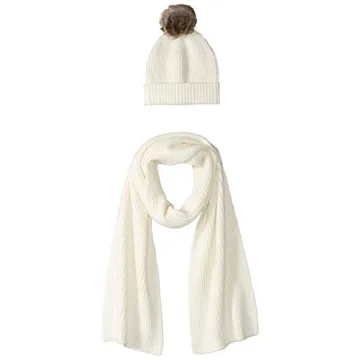 Amazon Essentials Women's Pom Knit Hat and Scarf Set - Stylish Comfort in Ivory