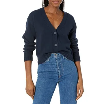 Introducing the Amazon Essentials Women's Relaxed Fit V-Neck Cropped Cardigan, a cozy essential that effortlessly blends style and comfort. Crafted with high-quality, breathable cotton, this midweight sweater not only keeps you warm during those chilly days but also drapes beautifully, ensuring a flattering silhouette. With its modern cropped design, you can easily dress it up for more polished looks or dress it down for relaxed outings....