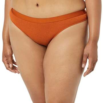 Show moreDiscover the perfect blend of comfort and style with the Amazon Essentials Women's Ribbed Cotton Thong Underwear. This stylish pack of four features a variety of colors—brown, light beige, navy, and red—ensuring you have a pair for every mood and outfit. Designed to sit low on the hips, these thong-style panties are crafted from a soft, lightweight cotton blend that boasts a ribbed texture and impressive 4-way stretch. This means you can enjoy all-day comfort without compromising on support or style. Ideal for everyday wear, they are versatile enough to pair with all your favorite outfits while providing a flattering fit that accentuates your natural shape.