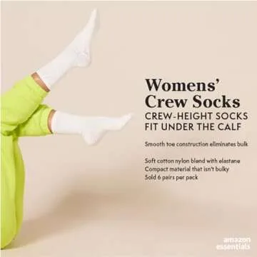 Amazon Essentials Women's Socks Crew - 6 Pairs of White, Cotton, Size 6-9